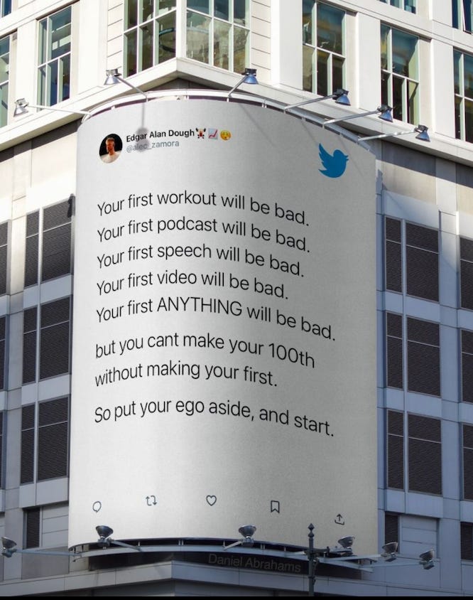 THIS is what encouraged me to sit down and write today. As articulated by Elizabeth Day, “If you can remove your ego from a process, then there really isn't any difference between success and failure. They're just both parts of a process.”